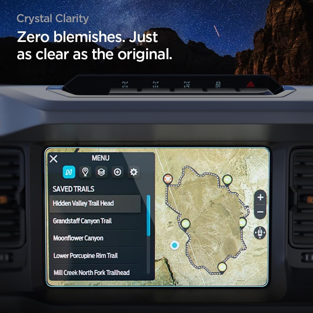 Ensure your Ford Bronco’s touchscreen stays in pristine condition with the Spigen Tempered Glass Screen Protector [GlasTR Slim]. Upgrade your protection today!